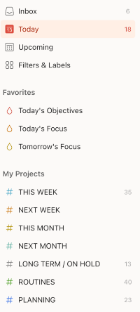 So I started by moving all my tasks from more complex task managers, like ClickUp, to the more focussed but flexible task manager Todoist. Instead of putting everything into projects, I just have active tasks for this week and structure the rest in global projects. Partly inspired by Carl Pulein's videos.