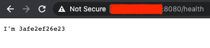 If you now go to your docker nodes public IP in your browser on port 8080 at /health (e.g. http://IPADDRESS:8080/health), you should see something like this:
