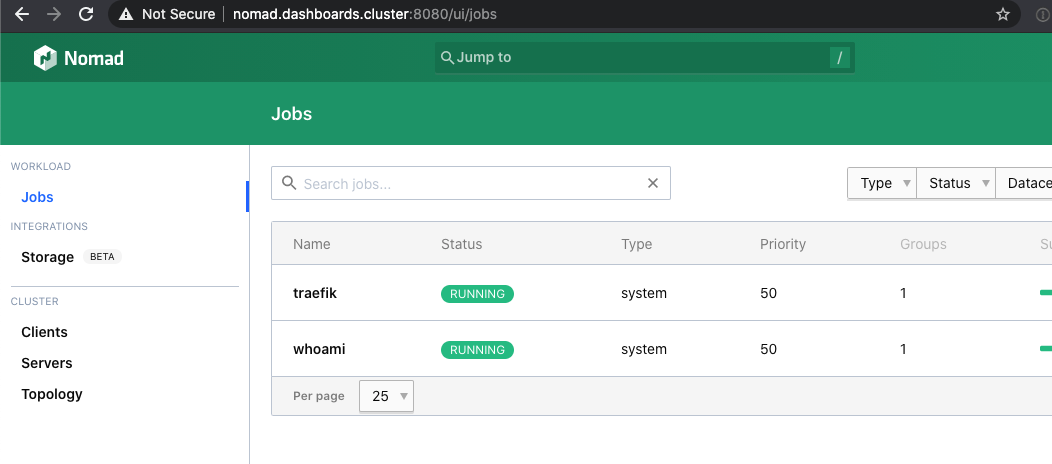Now you should wait a minute for it to correctly deploy. Then use your browser to go to: http://nomad.dashboards.cluster:8080 and you should see: